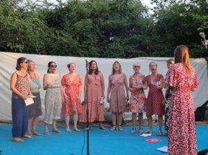 Les Belles en goguette… est une chorale de 11 femmes. Notre répertoire est composé de chants du monde. Nous sommes accompagnées par Anaïs Besson, notre cheffe de cœur.