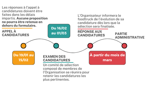 Afin de garantir une offre variée et qualitative, les emplacements sont limités à 7 foodtrucks (salés et sucrés)